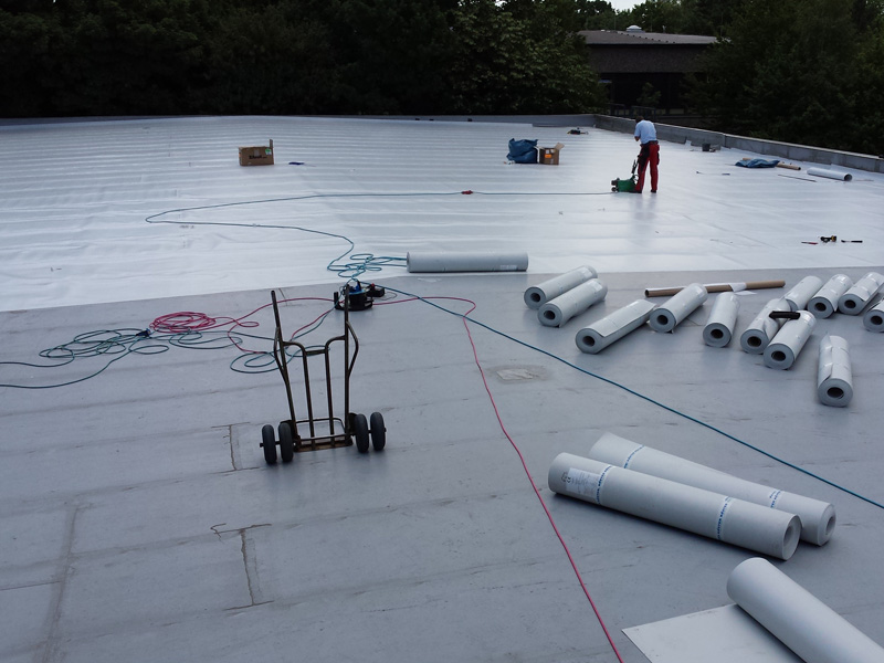| | Deutschland, Frankfurt am Main, Maastricher Ring, Dachabdichtung mit TPO |