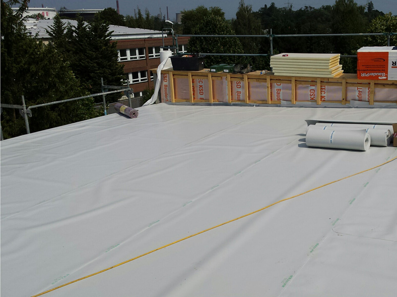 | | Deutschland, Braunschweig, Flachdachsanierung der Abdichtungsebene |