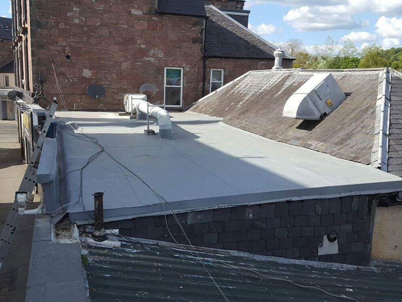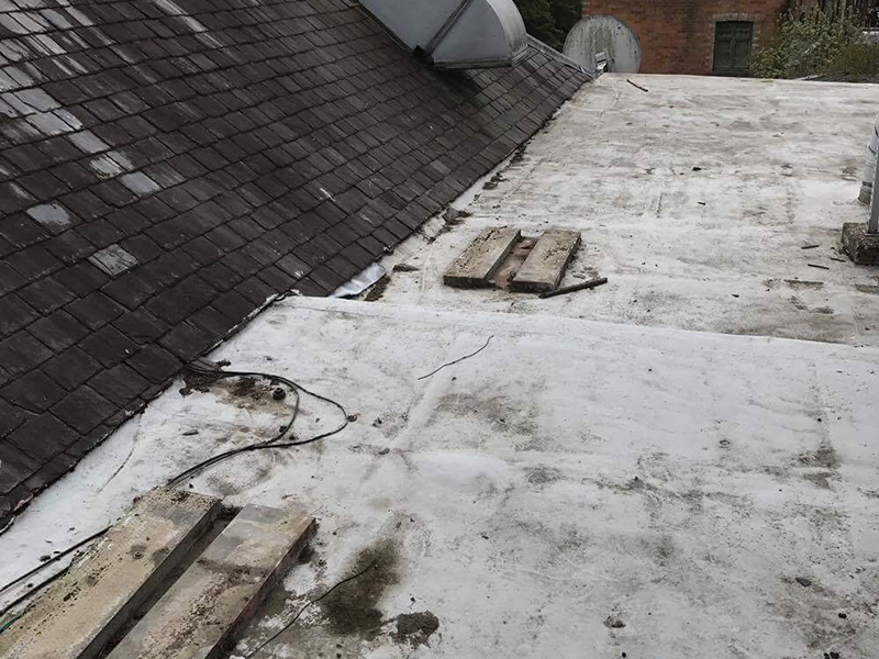 | | Deutschland, Braunschweig, Flachdachsanierung der Abdichtungsebene |