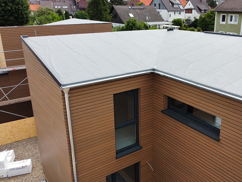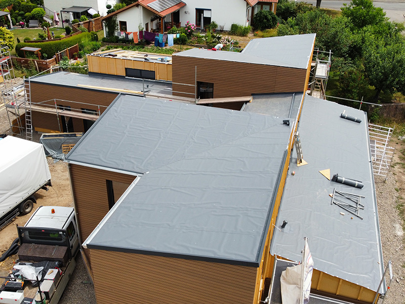 | | Deutschland, Herbolzheim, Neubau Produktionshalle, Dachabdichtung mit TPO-Dachbahnen |