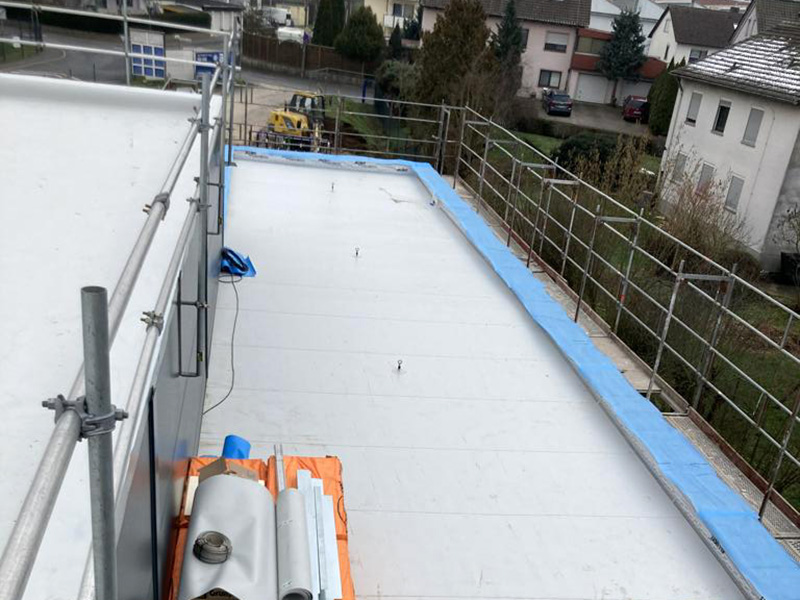 | | Deutschland, Herbolzheim, Neubau Produktionshalle, Dachabdichtung mit TPO-Dachbahnen |
